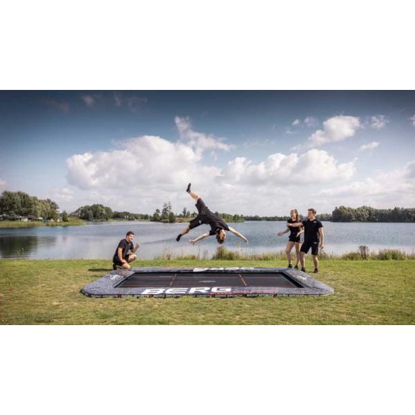 Obdélníková trampolína BERG Ultim Elite Regular je kvalitní a bezpečná trampolína, navržená pro dlouhé a bezpečné skákání. Kombinace pružin TwinSpring Gold a techniky AirFlow zajišťují menší odpor vzduchu, větší plochu skoku a více skákání. BERG…