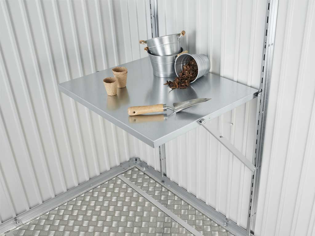 Sklápěcí stůl do zahradního domku Biohort BH40011 - praktický a prostorově úsporný pracovní stůl pro zahradní domky. Sklápěcí konstrukce a nosnost až 30 kg.