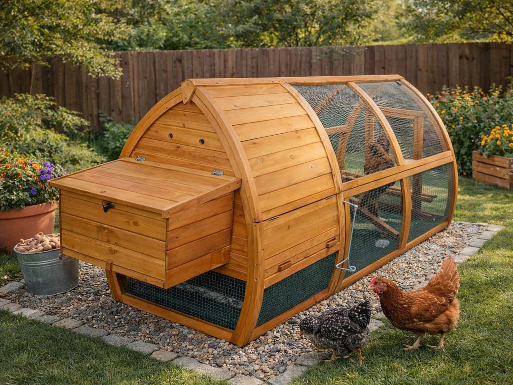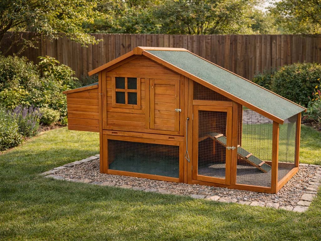 Ideální kurník pro 4-6 slepic s pohodlným přístupem a odolnými borovicovými dřevěnými konstrukcemi.