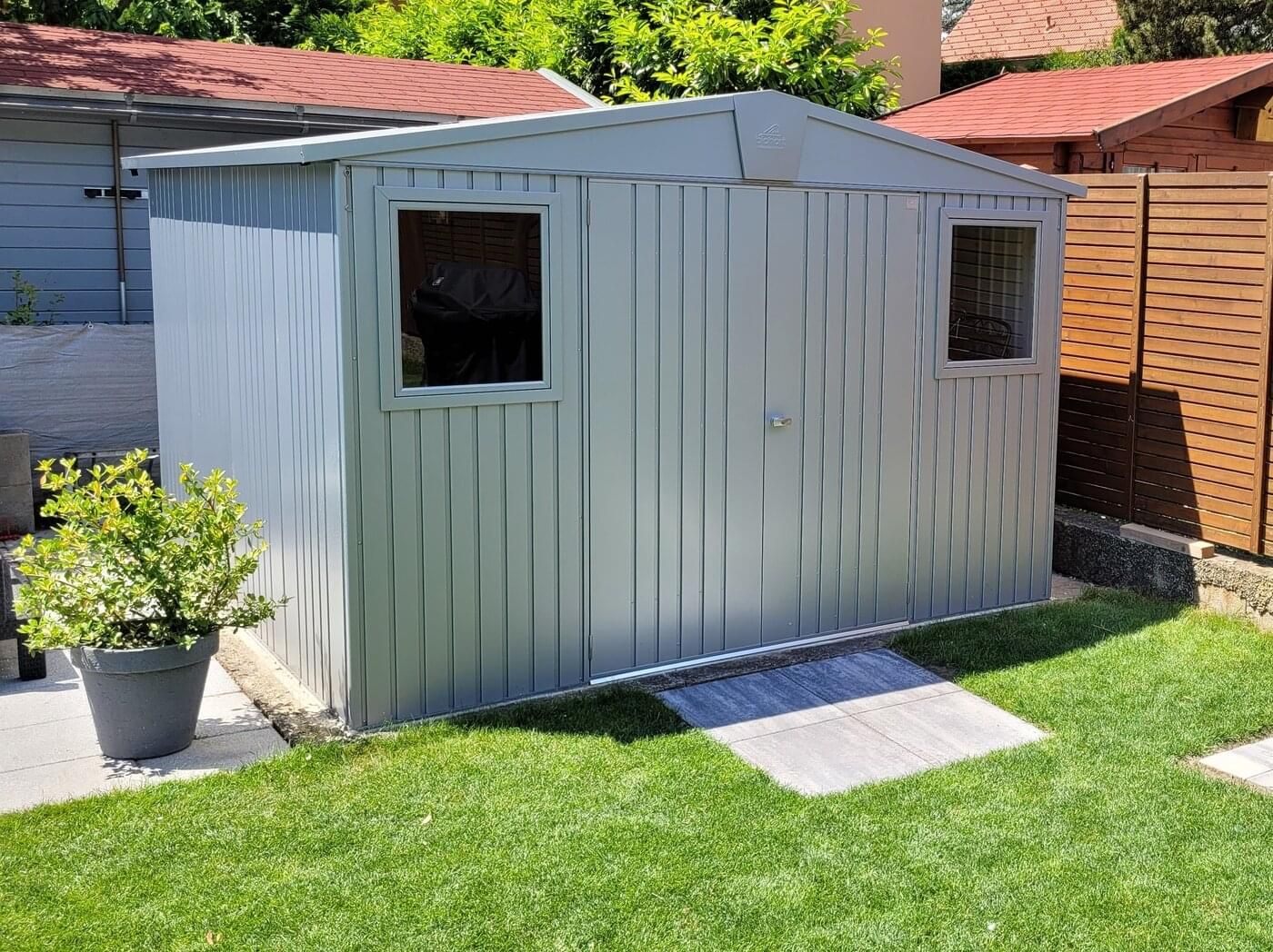 Zahradní domek NEO 3C, šedý křemen, nabízí perfektní uskladnění nářadí a kol s moderním designem. Kombinuje styl, funkčnost, kvalitu a bezpečnost. Vybírat můžete až z devíti barevných variant a 16 různých rozměrů.